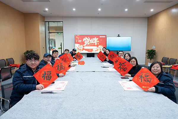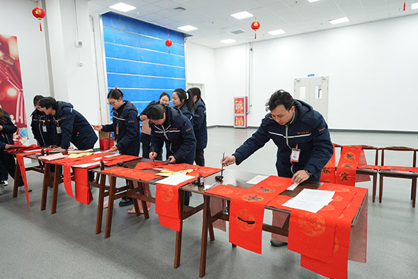 合肥基地工會準備了喜慶的春聯紙和書法筆,并征集各部門春聯需求數量,提前準備好對文,6名揮墨大師歷時近 4小時,共書寫了兩百余張福字、一百余副春聯,這些春聯和福字被分發給各部門張貼,通過春聯向每一位員工傳遞新年的美好祝愿。