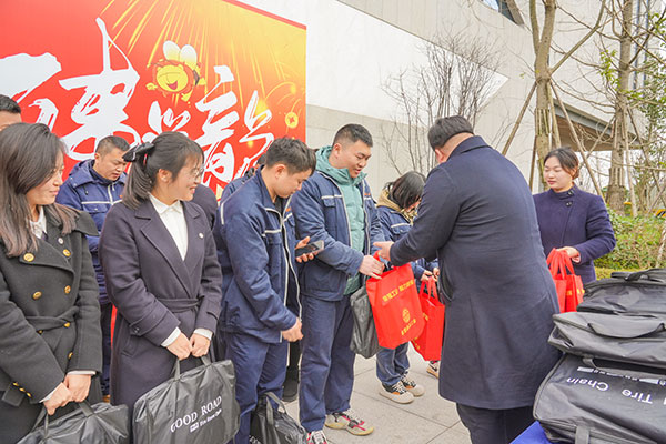 員工開心領(lǐng)取公司春節(jié)福利餐