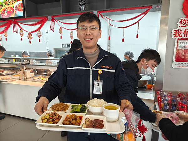 我們在一起,是“家”是“團(tuán)圓”,在通威太陽能,每逢新春佳節(jié),總有一群堅守崗位就地過節(jié)的員工,為了讓員工們在公司也能過上安心年、暖心年。公司聯(lián)合食堂供應(yīng)商特別準(zhǔn)備了美味可口的年夜飯、春節(jié)福利餐,讓員工即便不能回鄉(xiāng),也能與通威家人們一起同享美食、共度佳節(jié),感受不一樣的“家”的味道。