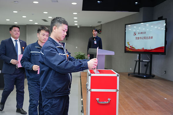 通威太陽能雙流基地原黨委書記陳君在會上發言,回顧近年黨建工作成果,并激勵全體黨員堅持黨建引領,助力企業發展。隨后大會進行黨委書記民主選舉,按照《中國共產黨章程》《中國共產黨基層組織選舉工作條例》等有關規定,會議表決通過了選舉辦法、候選人名單和監票人、計票人、唱票人名單。會議通過充分醞釀,以無記名投票方式選舉產生了新一任黨委委員、書記。