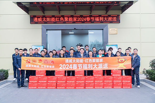 濃情迎新春,福利暖心田。在一年一度的新春佳節到來之際,為感謝大家的辛勤付出,讓每位員工都能感受到企業給予的溫情,增強企業凝聚力和職工歸屬感。通威太陽能各基地有序啟動春節福利派送活動,當前,通威太陽能安徽公司、眉山基地、金堂基地、通合項目已完成新春福利發放,讓每位員工都早早感受到了來自公司的新春祝福。