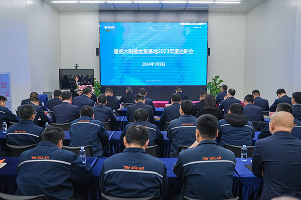 為深入總結(jié)2023年管理工作,回顧工作成果,發(fā)現(xiàn)問(wèn)題與不足,全面促進(jìn)2024年工作規(guī)劃和部署,1月9日,通威太陽(yáng)能金堂基地順利召開(kāi)了2023年度中干述職會(huì)議,通威太陽(yáng)能總經(jīng)理周華、副總經(jīng)理宋梟、總經(jīng)理助理陳君、金堂基地總經(jīng)理助理龐三鳳出席會(huì)議并作重要指示,金堂基地各廠部、職能部門負(fù)責(zé)人及業(yè)務(wù)骨干參與會(huì)議。