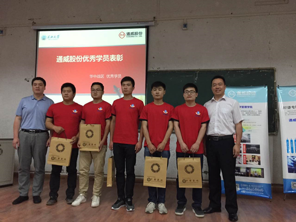 長江大學(xué)動科學(xué)院黨委書記王凌華為報告會致辭。會議現(xiàn)場通過照片及視頻的形式展示了2017年華中戰(zhàn)區(qū)新英培訓(xùn)的精彩瞬間,讓參會人員對此前培訓(xùn)有更為直觀的了解和認(rèn)識。隨后,來自華中戰(zhàn)區(qū)洪湖、武漢、南昌等公司的五位優(yōu)秀實習(xí)生依次上臺,講解自己在通威的畢業(yè)實習(xí)報告,得到了公司和學(xué)院領(lǐng)導(dǎo)的高度贊賞。武漢公司總經(jīng)理彭金鋼、長江大學(xué)動科學(xué)院黨委書記王凌華作為頒獎嘉賓,對優(yōu)秀學(xué)員進行表彰。