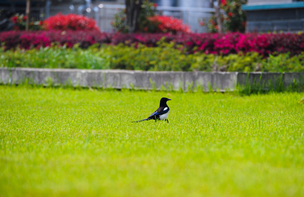 通威太陽(yáng)能的花園式工廠,引來(lái)一位特別的“訪客”:喜鵲在草地上悠然踱步