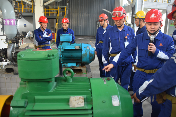 會前,段董事長率團分別參觀了永祥樹脂和永祥水泥的廠區及部分生產車間,通過聽取當事人的講解介紹,耳聞目睹,直觀地感受管理變化,學習并借鑒先進的管理經驗。據了解,永祥樹脂注重安全標準的教化功能,哪里人流量大,哪里就有安全標準宣傳,凡是有人的地方就有標準,安全管理均體現在細節上。段董事長對永祥樹脂潔凈的廠區道路、漂亮的草坪、鳥語花香、設備巡檢標準、潤滑提醒卡、工器具擺放等給予了高度評價。永祥水泥今年以來快速推進管理提升,在以前做出成績的基礎上又取得了長足進步,大家興致勃勃地參觀了其別具一格的文化走廊。尤其是業內普遍認為最難治理的水泥磨工段,而永祥水泥員工通過自己動手制作了彩色拋光地面,真正創建了清潔生產環境,員工“有尊嚴地、體面地工作”。