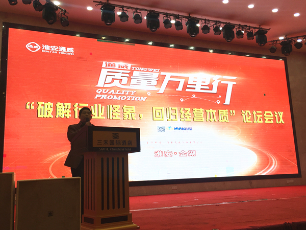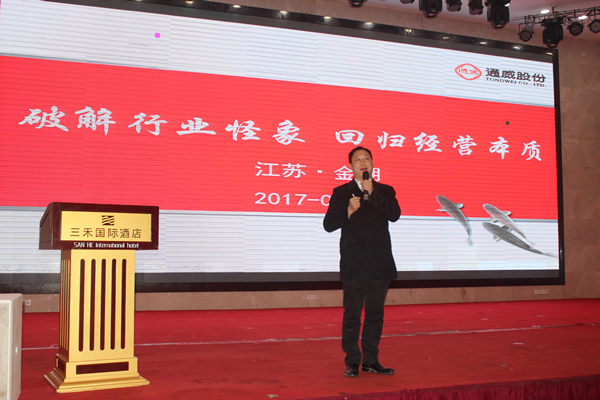 近日,淮安通威在金湖縣三禾國(guó)際酒店組織召開以“通威質(zhì)量萬里行——破解行業(yè)怪象,回歸經(jīng)營(yíng)本質(zhì)”為主題的技術(shù)論壇會(huì)議,金湖縣水產(chǎn)技術(shù)推廣站副站長(zhǎng)毛國(guó)慶、淮安通威總經(jīng)理丁永國(guó)及當(dāng)?shù)?00余位養(yǎng)殖戶參會(huì)。