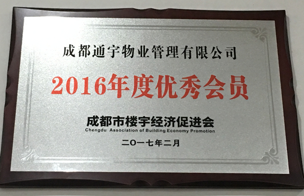 成都通宇物業(yè)管理有限公司榮獲“成都市樓宇經(jīng)濟(jì)促進(jìn)會(huì)優(yōu)秀會(huì)員企業(yè)”