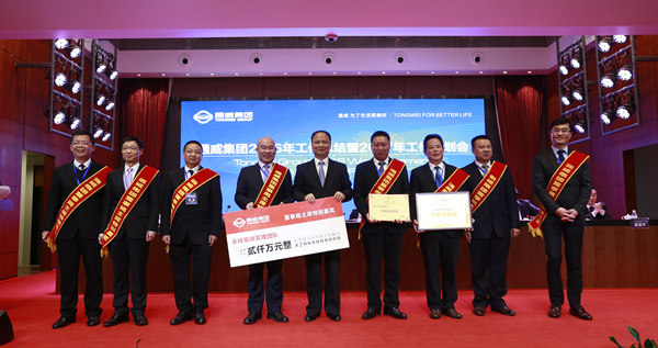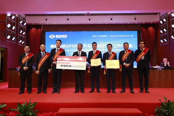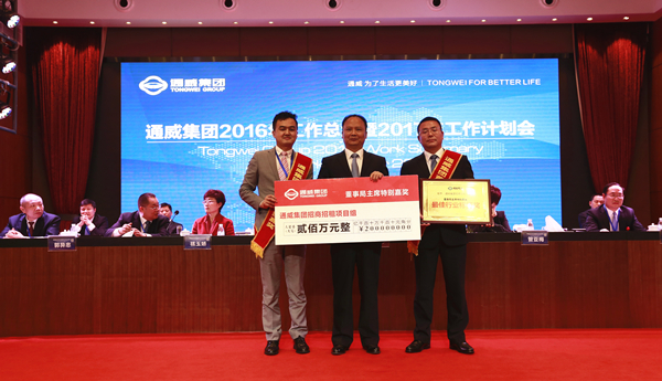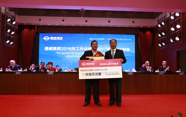 在集團年度表彰環(huán)節(jié),“2016通威‘融合、變革、創(chuàng)新’十佳分子公司”、“2016通威年度英雄團隊”、“通威集團董事局主席特別嘉獎”等年度重磅獎項一一出爐,將大會現(xiàn)場的氣氛推上了一波又一波的高潮,現(xiàn)場共頒發(fā)了近7000萬獎金。