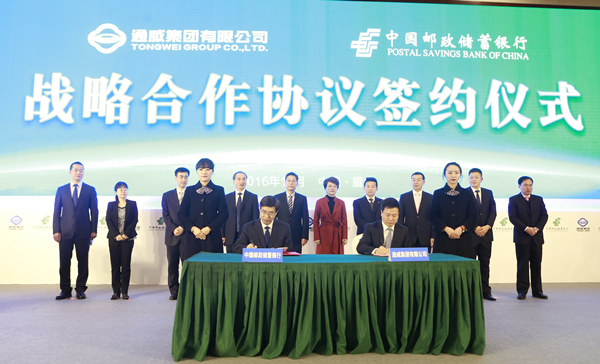 為實現優(yōu)勢互補,強強聯合,共同成長,互利共贏,12月15日,通威集團與中國郵政儲蓄銀行戰(zhàn)略合作簽約儀式在四川省眉山市隆重舉行。中國郵政儲蓄銀行總行副行長、三農金融事業(yè)部總裁邵智寶,郵儲銀行總行三農金融事業(yè)部總監(jiān)楊波,郵儲銀行四川省分行黨委副書記、副行長周亞平,郵儲銀行四川省分行副行長劉強,通威集團禚玉嬌總裁,通威集團財務總監(jiān)肖吉華,通威股份副總裁兼華西戰(zhàn)區(qū)總裁宋剛杰,通威股份財務總監(jiān)袁仕華,通威農業(yè)擔保公司總經理盧曉華,通威股份四川分公司總經理李德貴等領導出席簽約儀式。通威集團、通威股份及中國郵政儲蓄銀行相關人員見證簽約儀式。