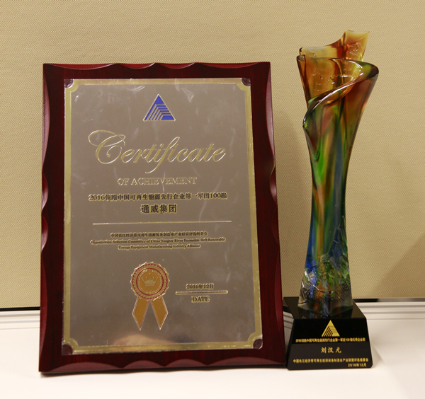 12月12日, “2016領(lǐng)跑中國(guó)可再生能源先行企業(yè)第一軍團(tuán)100強(qiáng)及優(yōu)秀企業(yè)家”頒獎(jiǎng)典禮在南京隆重舉行。盛典期間,通威集團(tuán)憑借雄厚的實(shí)力榮膺“2016領(lǐng)跑中國(guó)可再生能源先行企業(yè)第一軍團(tuán)100強(qiáng)”,十一屆全國(guó)政協(xié)常委、通威集團(tuán)董事局劉漢元主席榮獲“2016領(lǐng)跑中國(guó)可再生能源先行企業(yè)第一軍團(tuán)100強(qiáng)優(yōu)秀企業(yè)家”。