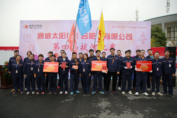 11月18日,通威太陽能(合肥、成都)有限公司迎來通威太陽能電池項目投產三周年暨雙流5GW高效晶硅電池項目啟動1周年慶,當天除了盛大的周年慶典,兩地員工也用自己的獨特方式————拔河比賽共賀周年慶典,以青春活力、激情洋溢的狀態度過了這個特別的紀念節日。據了解,作為通威太陽能公司的傳統文化活動項目,這是通威太陽能合肥公司第四屆拔河比賽、成都公司首屆拔河比賽。