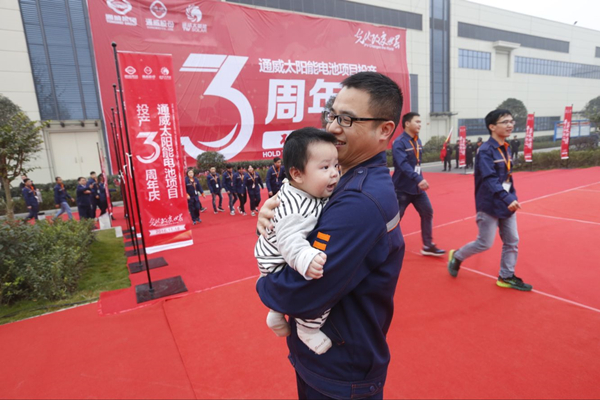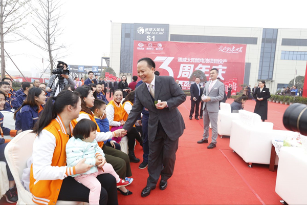 通威太陽(yáng)能電池項(xiàng)目投產(chǎn)三周年慶儀式現(xiàn)場(chǎng)