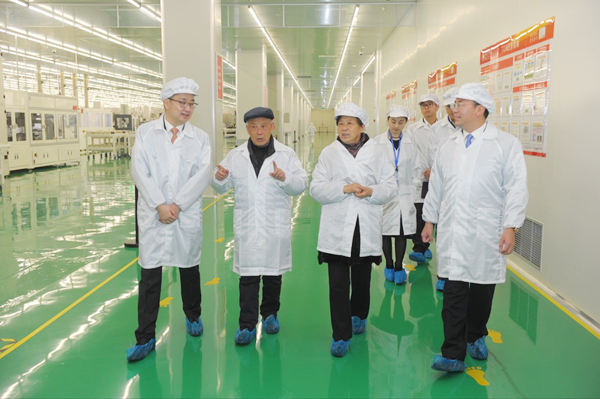 黃其剛副總裁、謝毅董事長(zhǎng)陪同長(zhǎng)輩參觀s1電池車間