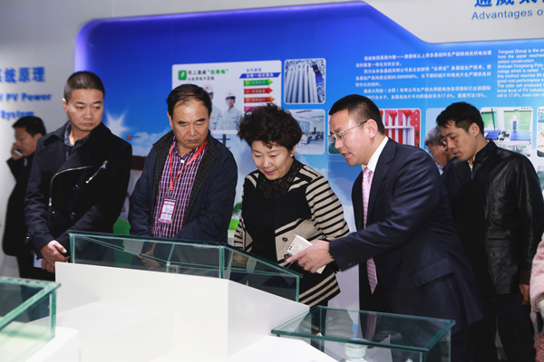 在通威集團體驗中心,包部長一行領導、嘉賓詳細了解了通威集團34年發展歷程。在考察過程中,劉主席向包部長介紹了通威雙主業發展現狀及成果。劉主席表示,通威 “漁光一體”模式將通威兩大核心產業優勢集中體現,實現了我國清潔能源與傳統水產養殖轉型升級的有機結合,真正實現了“水上發出清潔環保的光伏電力,水下養出健康安全的通威魚”這一目標。已投運的如東“漁光一體”基地是通威在全國第一個真正意義上的“漁光一體”項目,當前發電量超出預期。