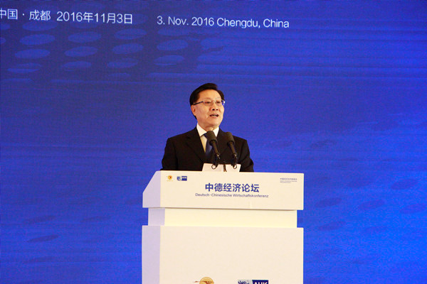 王東明書記在致辭中表示,四川作為中央政府確定的對德區域合作先行省,將抓住四川獲批建設全面系統創新改革試驗區和中國(四川)自由貿易試驗區的契機,積極推進與德國創新產業合作,采取“政府+機構+企業”的共享開放合作模式,加快建設中德創新產業合作核心園區,推進中德兩國企業和機構在節能環保、智能制造、職業培訓等多領域開展項目合作,積極推進中德地方經濟合作創新模式和探索新路徑。