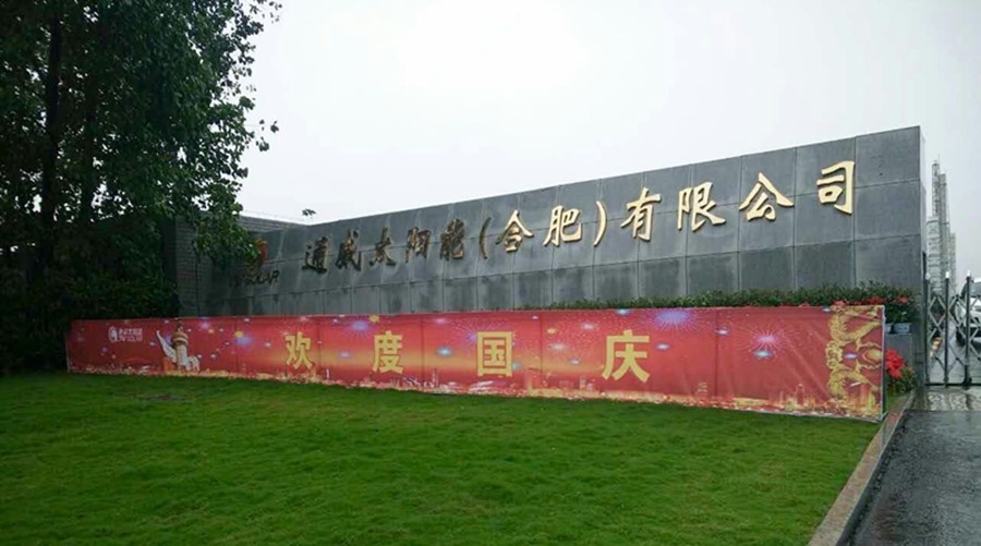 通威太陽能(合肥)公司廠區門口LED大屏顯示“歡度國慶”