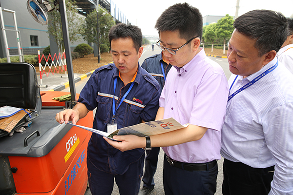謝董事長高溫慰問的同時檢查合肥公司叉車工作業點檢表