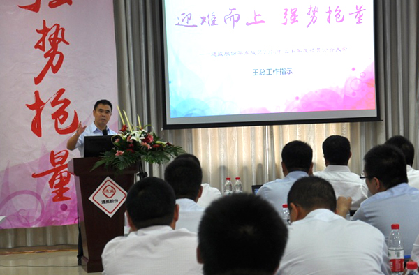 會議上,華東戰區各分子公司總經理首先就本公司上半年市場工作推進情況及三季度工作計劃作了匯報,戰區財務部和市場部匯報了上半年華東戰區總體經營及對標管理的情況。王總在聽取匯報后指出,大的市場競爭格局已發生變化,華東戰區需要做的就是“迎難而上,強勢搶量”。迎難而上是要從365示范、市場網絡、提升產品檔次三個方面入手;強勢搶量則是從塘口會、新網絡、經銷商銷量三個方面發力。隨后,王總對戰區各分子公司下一步的行動作了具體部署。