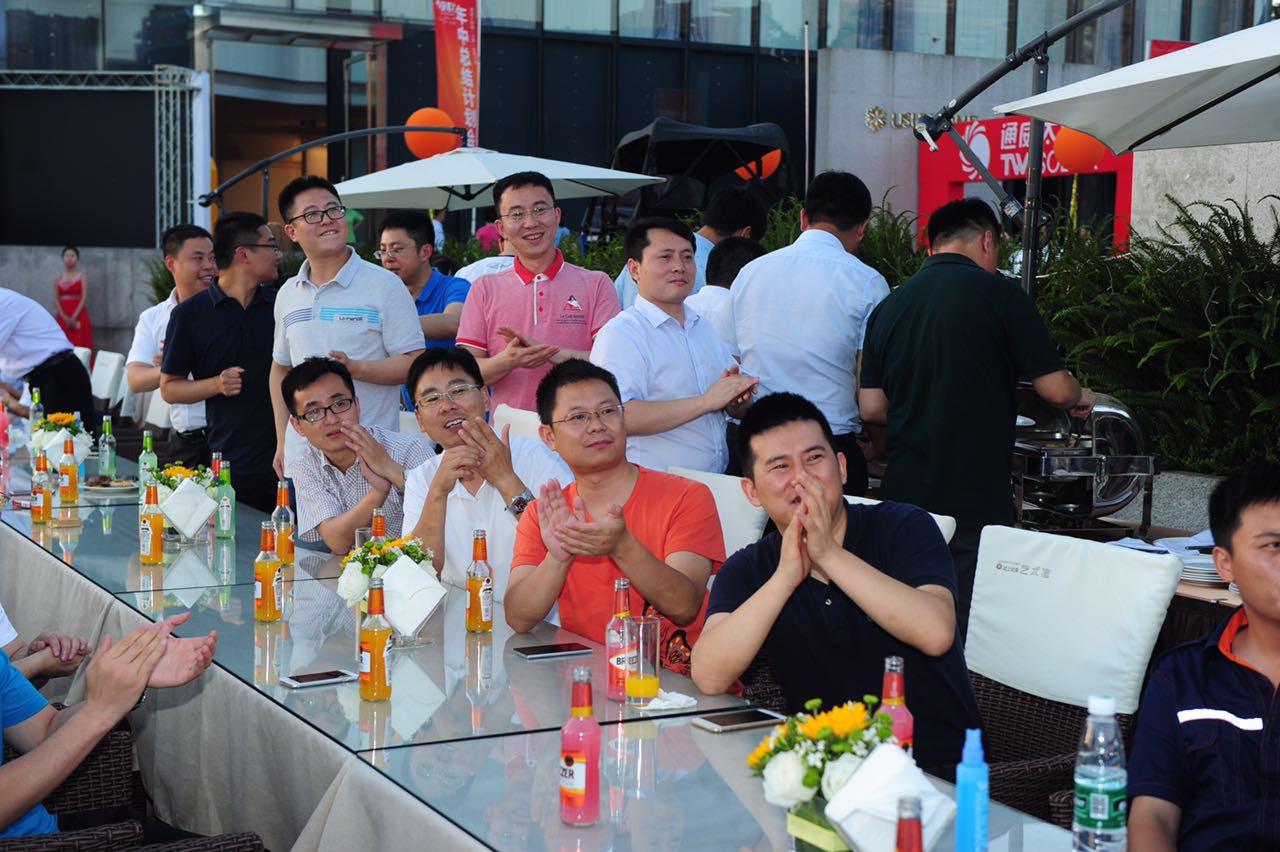會議結(jié)束后,大家換上便裝,懷著輕松愉悅的心情,來到東湖公園參加“湖·光盛宴”2016上半年精英晚宴。川劇變臉、歐美樂團(tuán)表演、鋼琴演奏……現(xiàn)場一個(gè)個(gè)精心準(zhǔn)備的節(jié)目讓大家直呼過癮?!拔?、四……一”隨著現(xiàn)場高喊倒計(jì)時(shí),湖面上水幕電影播放起通威太陽能(合肥、成都)公司發(fā)展歷程,大家紛紛掏出手機(jī),留存下自己與公司共同成長的記憶。