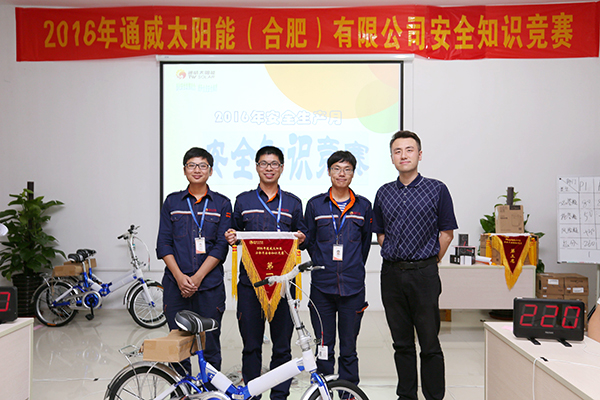 通威太陽能(合肥、成都)有限公司首席財務(wù)官周丹為安全知識競賽一等獎獲獎隊伍頒獎