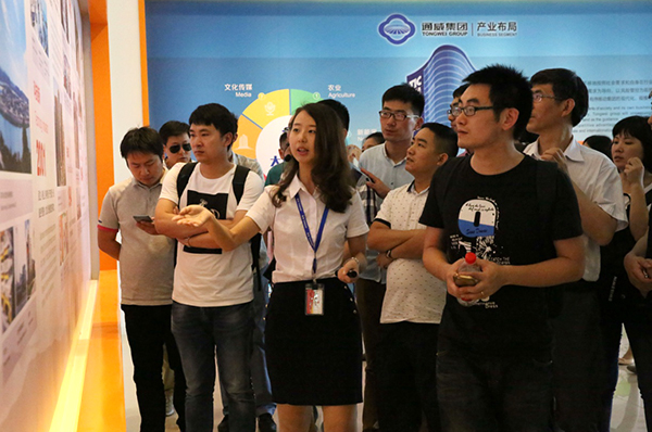 蔣翠清教授一行在公司展廳聽取通威集團興業(yè)歷程介紹