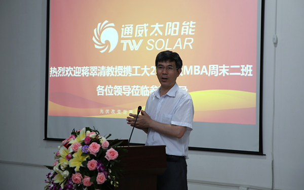 近日,合肥工業(yè)大學(xué)教授蔣翠清攜工大2014級MBA周末二班學(xué)員到訪通威太陽能(合肥)有限公司,開展為期半天的參觀交流活動,通威太陽能(合肥、成都)有限公司首席財務(wù)官周丹熱情接待并座談。