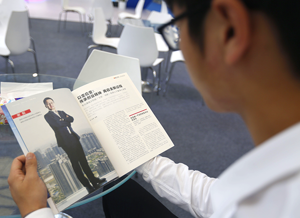 觀展人員閱讀通威太陽能(合肥、成都)有限公司謝毅董事長專訪