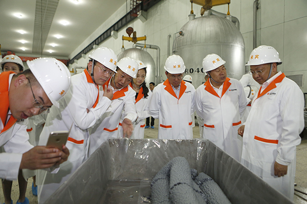 隨后,黃總一行來到多晶硅還原車間,了解了多晶硅生產情況,興致勃勃地觀看生長中的多晶硅棒以及剛出爐的產品,對公司堅持“提升管理、品質營銷、務實創新、行業爭先”的經營思路表示充分肯定。