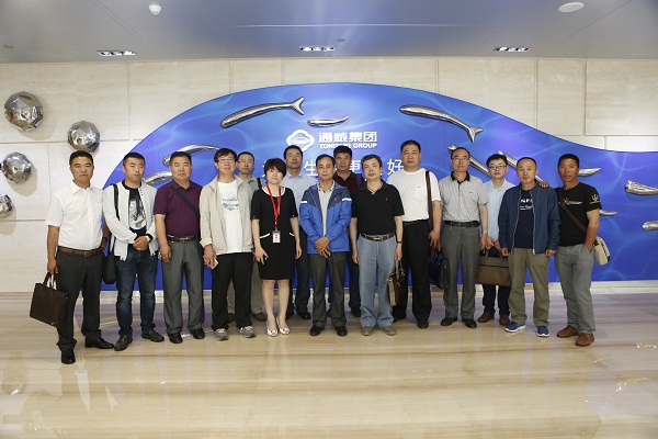 李站長(zhǎng)、陳站長(zhǎng)一行首先參觀了通威體驗(yàn)中心,詳細(xì)了解了通威農(nóng)牧和新能源雙主業(yè)的發(fā)展情況,并對(duì)通威“漁光一體”模式的相關(guān)情況興趣濃厚。
