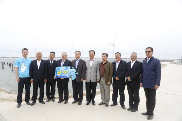 劉漢元主席與李可心副站長一行在如東“漁光一體”基地合影留念