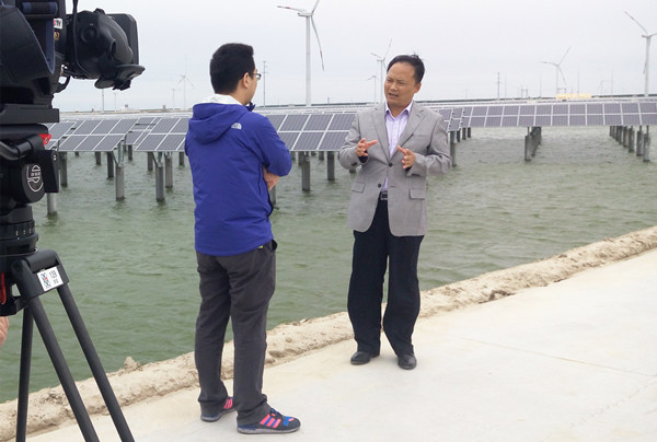 劉漢元主席在如東“漁光一體”基地接受中央電視臺采訪