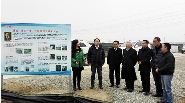 2月28日,通威股份嚴虎嚴總赴江蘇射陽縣通威“漁光一體”示范基地————陳紅“漁光一體”池塘檢查指導工作,并考察了當地的光伏電站。通威股份副總裁兼華東片區總裁王尚文,國務院特殊津貼專家、通威首席水產專家、設施漁業工程研究所名譽所長吳宗文,通威淮安飼料有限公司總經理丁永國,設施漁業工程研究所工程師謝偉等陪同。