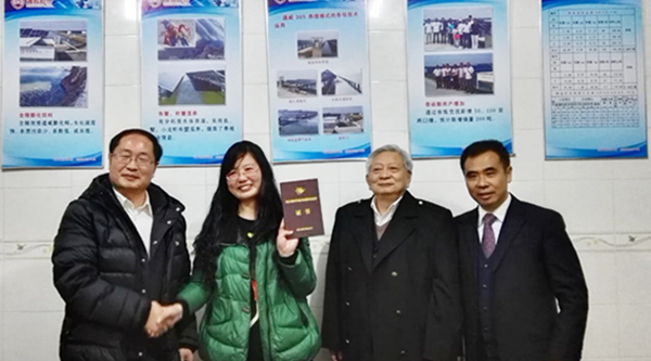 嚴總向陳紅頒發四川省科技廳授予的通威國際領先水平“漁光一體”成果證書