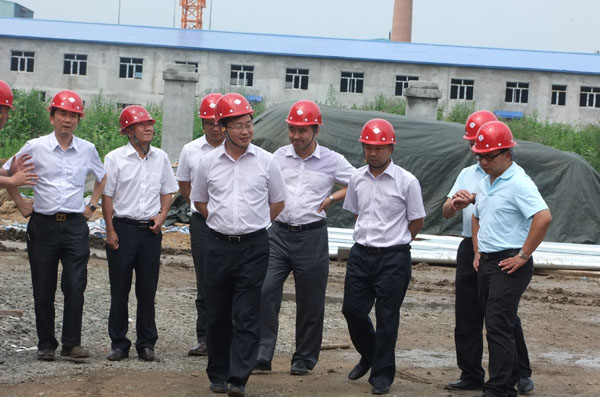 7月16日,嚴總一行馬不停蹄來到哈爾濱通威,深入一線建筑工地,檢查新廠建設工作。嚴總等領導仔細查看了車間、庫房、辦公樓等工程項目建設情況,了解整體進度,并聽取了通廣公司工程項目經理秦琨的詳細匯報。