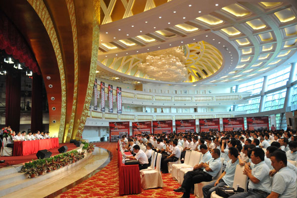 會議總結(jié)階段,王總評價了本次會議:人員多,規(guī)模大,內(nèi)容豐富,收獲非常之多,并闡述了馬上行動的工作措施。嚴總發(fā)表重要講話,對華東戰(zhàn)區(qū)三年以來的工作予以了充分肯定,并要求各公司圍繞服務(wù)營銷轉(zhuǎn)型,持續(xù)提升和轉(zhuǎn)化,不斷將好的做法傳播復制,逐步從生產(chǎn)商轉(zhuǎn)型為服務(wù)商,做好眼前,著眼未來。宋總通報了2011-2013年的戰(zhàn)區(qū)經(jīng)營數(shù)據(jù)情況及2014年各公司的銷量增比情況,號召大家在案例中樹典型找差距,明確了華東戰(zhàn)區(qū)服務(wù)營銷轉(zhuǎn)型的決心和方法,重申“飼料之外下功夫”的指導思想,各公司、各部門及人員將緊緊圍繞“創(chuàng)造價值”為核心開展工作。