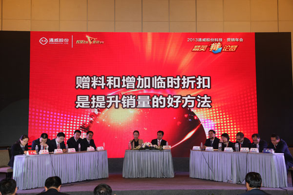 8日下午,劉主席在閉幕式上作重要講話,他指出,2013年,在全體通威人的辛勤勞動,聚勢聚焦,執行到位,有效經營之下,通威股份在全行業面臨低迷之際逆勢而上,尤其是科研、市場體系承受了很多來自于市場、用戶、競爭對手和總部管理要求等方方面面的壓力,所以借此機會,對所有今年戰斗在四面八方的各位直接、間接服務于、支撐于市場線的所有通威人道一聲,大家辛苦了!劉主席指出,“科技引領·營銷爭鋒”作為2013年科技·營銷年會的主題思想,將科研、營銷兩大體系召集在一起開年會,是希望兩大體系能進一步加強聯動,加大科研項目落地、轉化,同時,通威股份在今后相當長的時間內,要繼續加大研發的深度、廣度,進一步培養和打造科技隊伍,在硬件上搭建全行業、全中國,乃至全世界最有效、最先進的硬件平臺,引進各種研究人員、專業團隊,真正立足于當下的技術需要,并探索符合長遠發展的思路。