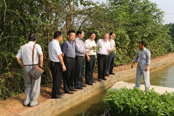 楊主任一行走訪了雙流、新津等通威養(yǎng)殖基地,并重點(diǎn)了解池塘底排污技術(shù)。據(jù)悉,池塘養(yǎng)殖污水治理,是現(xiàn)代水產(chǎn)生態(tài)健康養(yǎng)殖的發(fā)展趨勢(shì)。近年來(lái),我國(guó)多數(shù)精養(yǎng)高產(chǎn)池塘養(yǎng)殖沉積物超過(guò)水體自凈能力,使養(yǎng)殖池塘成為魚(yú)糞坑,導(dǎo)致養(yǎng)殖水體內(nèi)源性污染,而排放的養(yǎng)殖污水未經(jīng)固液分離、魚(yú)菜共生、人工濕地等物理、生物處理就直接排放到河流或農(nóng)灌渠,對(duì)當(dāng)?shù)丶跋掠嗡颦h(huán)境造成外源性污染。針對(duì)上述問(wèn)題,通威股份吳宗文項(xiàng)目組為探索環(huán)保、高效的科學(xué)養(yǎng)殖工程,建立節(jié)水環(huán)保漁業(yè)示范基地,進(jìn)行了大量調(diào)研和反復(fù)論證。通過(guò)刻苦鉆研、集思廣益,創(chuàng)新設(shè)計(jì)與建設(shè)了池塘底排污水工程系統(tǒng),有效防止了養(yǎng)殖內(nèi)源性污染。養(yǎng)殖污水經(jīng)糞水沉淀分離池,人工濕地、魚(yú)菜共生等物理、生物處理后達(dá)到國(guó)家漁業(yè)養(yǎng)殖用水標(biāo)準(zhǔn)再循環(huán)利用或排入溝渠,達(dá)到防止養(yǎng)殖內(nèi)、外源性污染,實(shí)現(xiàn)養(yǎng)殖水體良性生態(tài)循環(huán),為發(fā)展持續(xù)健康漁業(yè)和通威進(jìn)一步拓展市場(chǎng)提供了有力的技術(shù)支撐。