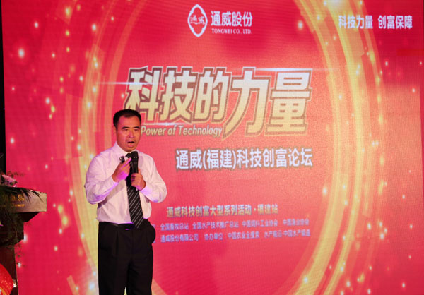 而本次論壇最引人關(guān)注的環(huán)節(jié),當(dāng)屬通威股份總裁嚴(yán)虎在現(xiàn)場全體與會(huì)嘉賓的見證下,正式公布“首屆通威科技創(chuàng)新基金”科技項(xiàng)目征集及評審獎(jiǎng)勵(lì)辦法。通威股份4月19日宣布投入1億元人民幣設(shè)立“通威科技獎(jiǎng)勵(lì)基金”,面向全球公開征集農(nóng)牧養(yǎng)殖領(lǐng)域的科研成果。之后,經(jīng)過兩個(gè)多月廣泛征詢、充分匯集各方專家、專業(yè)機(jī)構(gòu)和有關(guān)科研院所的意見,最終形成項(xiàng)目征集和評審辦法。嚴(yán)總指出,項(xiàng)目征集內(nèi)容為養(yǎng)殖技術(shù),申報(bào)對象面向全球、全行業(yè)所有參與人員或機(jī)構(gòu),并將設(shè)置科技項(xiàng)目、研究個(gè)人、應(yīng)用個(gè)人等多個(gè)獎(jiǎng)項(xiàng),每項(xiàng)獎(jiǎng)勵(lì)3-5項(xiàng)(人),具體獎(jiǎng)金額度將視獲獎(jiǎng)項(xiàng)目轉(zhuǎn)化應(yīng)用后實(shí)際產(chǎn)生的價(jià)值預(yù)判而確定,最高單項(xiàng)獎(jiǎng)金可達(dá)100萬元。論壇上公布的評審辦法要求,所有申報(bào)材料需在2013年9月30日前提交至通威股份技術(shù)中心辦公室,初審專家組在對所報(bào)項(xiàng)目的先進(jìn)性、適用性、經(jīng)濟(jì)性、有效性等進(jìn)行綜合評估之后推選出優(yōu)秀項(xiàng)目,再經(jīng)由通威股份及外聘的行業(yè)權(quán)威學(xué)術(shù)專家共10人組成終審專家組,按照嚴(yán)格的評定標(biāo)準(zhǔn)和模型,最終確定獲獎(jiǎng)名單,并于年底通威股份營銷年會(huì)上公布評審結(jié)果,頒發(fā)證書獎(jiǎng)金。嚴(yán)總指出,通威股份在對包括水產(chǎn)養(yǎng)殖業(yè)和畜禽養(yǎng)殖業(yè)在內(nèi)的全行業(yè)科技研究者和成果應(yīng)用者進(jìn)行評選推介和資金扶持的同時(shí),為鼓勵(lì)廣大水產(chǎn)養(yǎng)殖從業(yè)人員積極投身于科技創(chuàng)新工作,還將考慮在通威科技獎(jiǎng)勵(lì)基金下設(shè)立針對研究者和應(yīng)用者的“通威水產(chǎn)科技獎(jiǎng)”,專項(xiàng)獎(jiǎng)勵(lì)為國內(nèi)水產(chǎn)行業(yè)的科技創(chuàng)新和推廣工作做出突出貢獻(xiàn)的優(yōu)秀個(gè)人,并在每年4月左右召開的通威水產(chǎn)科技論壇上頒獎(jiǎng)。