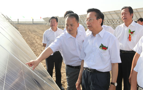揭牌儀式上,劉漢元主席對阜康市1MWp光伏發(fā)電項目進(jìn)行介紹,昌吉州常務(wù)副州長黃志忠致辭,陳昌智主席與栗智委員長共同揭牌。隨后,劉漢元主席陪同陳昌智主席參觀了光伏發(fā)電站,對電站的各項設(shè)施的功能以及修建歷程進(jìn)行了詳細(xì)地介紹。