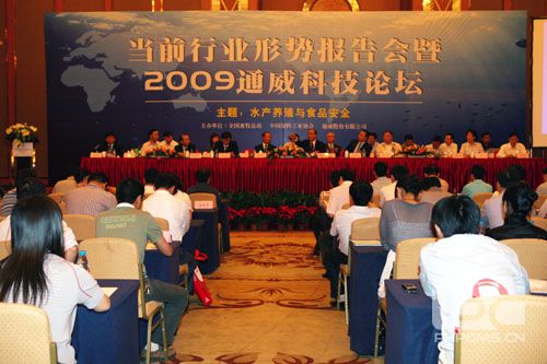 5月17日,由全國畜牧總站、中國飼料工業協會、通威股份有限公司共同舉辦的,以“水產養殖與食品安全”為主題、以科技創新為主線的“當前行業形勢報告會暨2009通威科技論壇”在成都世紀城天堂洲際大飯店隆重召開。中國飼料工業協會會長白美清,副會長譚竹洲,農業部畜牧業司副司長陳偉生,四川省畜牧食品局副局長姜文康,全國政協常委、通威集團董事局主席、通威股份董事長劉漢元,歐洲水產學會主席Laszlo Varadi博士,中國科學院水生生物研究所曹文宣院士等國內外飼料、畜牧、水產行業及相關領域主管領導、企業家、知名專家學者出席論壇,共同就當前國內外經濟形勢、當前我國養殖業和飼料工業經濟運行形勢等焦點、熱點問題進行探討分析,共襄行業發展大計。