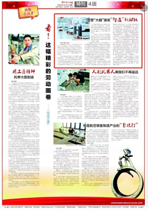 “五一”國際勞動節期間,為弘揚勞模精神、勞動精神,工匠精神,展現四川省發展新質生產力的成果成效,《四川工人日報》發表了題為《智慧“大腦”激發“智造”新動能》的報道,聚焦通威太陽能智慧工廠的“智”造之美。