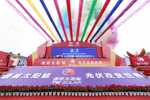 ▲2015年11月18日,通威舉行太陽能電池項目投產2周年慶暨雙流5GW高效晶硅電池項目啟動儀式