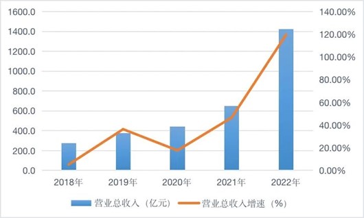 2018年至2022年通威股份營(yíng)業(yè)總收入及其增速