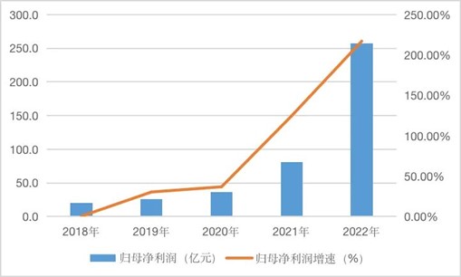2018年至2022年通威股份歸母凈利潤(rùn)及其增速