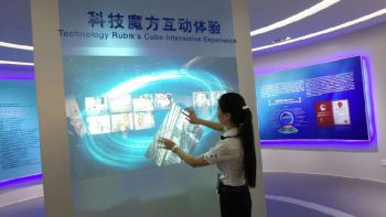 企業員工展示通威集團自行研究的3D電子屏顯示技術