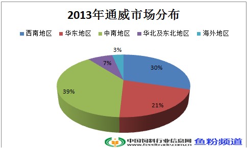 中南地區(河南、湖北、湖南、廣東、廣西和海南等地)一直作為通威股份的第一市場,2013年度中南地區業務貢獻為68.2億,占總業務的39%;西南地區業績為52.5億占總業務的30%,第三位華東地區,占21%。